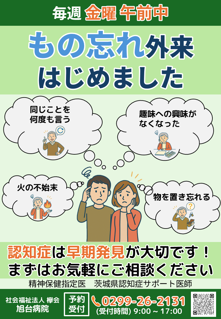 このたび旭台病院では、2025年10月より新たに「もの忘れ外来」を開設いたしました。