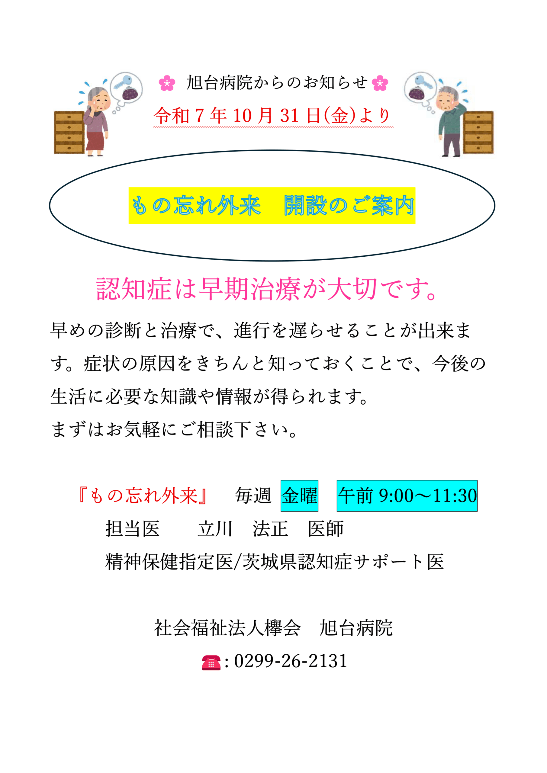 このたび旭台病院では、2025年11月より新たに「もの忘れ外来」を開設いたしました。